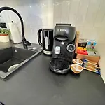 A kitchen with a microwave, a fridge, and kitchenware is provided in the apartment, along with coffee and tea makers. The nearest airport is Gdansk Lech Walesa airport, 25 km from Monte Cassino 26 Apartment in Sopot.